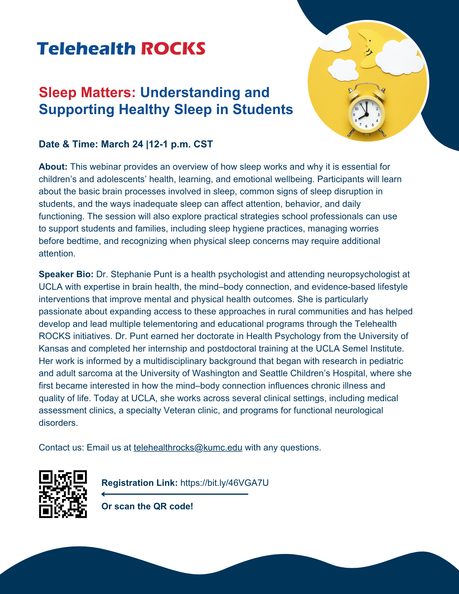 This webinar provides an overview of how sleep works and why it is essential for children’s and adolescents’ health, learning, and emotional wellbeing. Participants will learn about the basic brain processes involved in sleep, common signs of sleep disruption in students, and the ways inadequate sleep can affect attention, behavior, and daily functioning. The session will also explore practical strategies school professionals can use to support students and families, including sleep hygiene practices, managing worries before bedtime, and recognizing when physical sleep concerns may require additional attention.